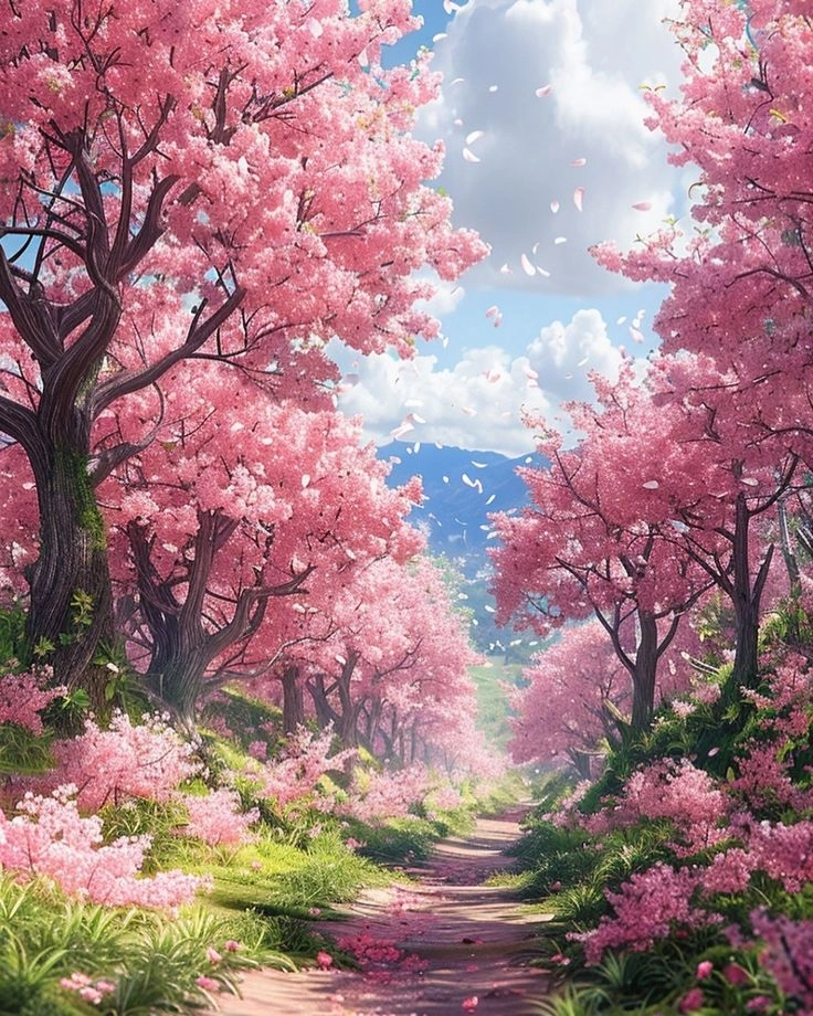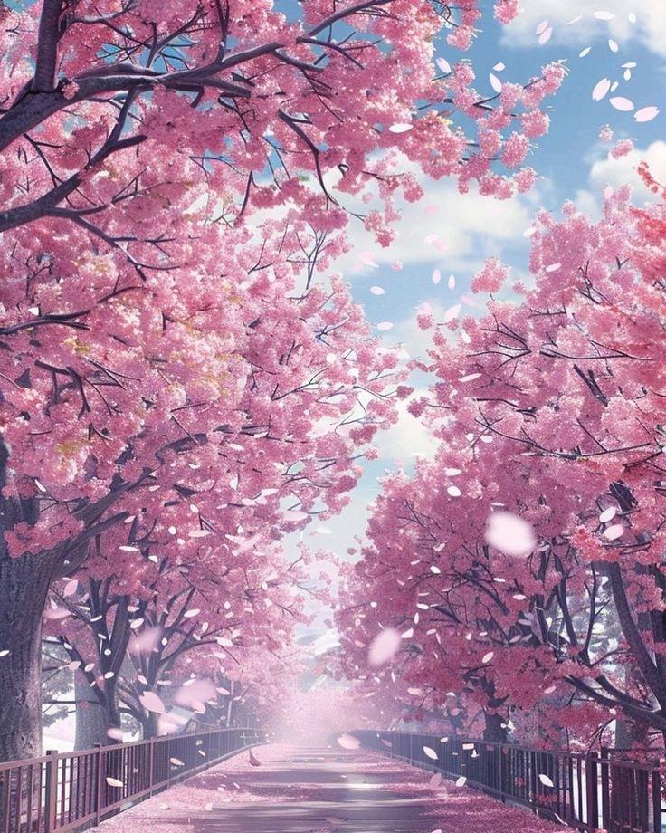Không thể bỏ qua ảnh thiên nhiên hoa anh đào anime – biểu tượng của mùa xuân và vẻ đẹp thuần khiết. Những cánh hoa bay nhẹ nhàng trong gió, phối cảnh nên thơ cùng màu sắc tinh tế tạo nên những khoảnh khắc anime tràn đầy cảm xúc và sự yên bình đến nao lòng.