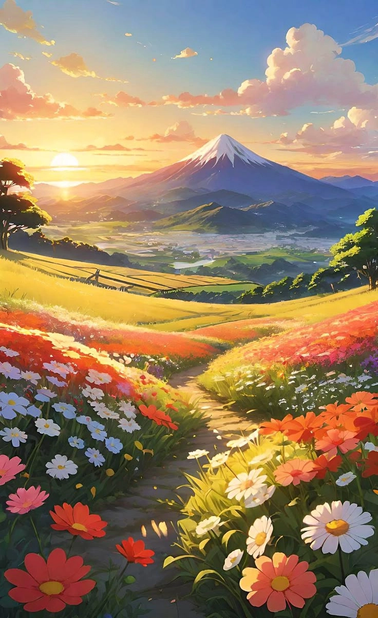 Ảnh thiên nhiên anime luôn được yêu thích vì kết hợp hài hòa giữa vẻ đẹp mộng mơ và nghệ thuật sáng tạo đặc trưng của phong cách Nhật Bản. Với gam màu rực rỡ, chi tiết tinh xảo và bối cảnh nên thơ như bầu trời hoàng hôn, rừng cây, biển cả hay cánh đồng hoa, những bức ảnh này khơi gợi cảm giác bình yên, lãng mạn và thoát ly khỏi thực tại.